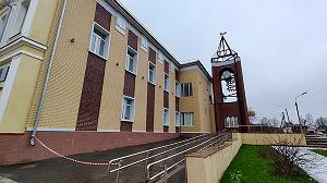 Рядом с храмом - пожарная каланча. Она была совсем руинирована, но, к счастью, местные власти решили восстановить памятник. Здание разобрали и на его фундаменте (с использованием старого кирпича) восстановили строение, устроив в нем Дворец бракосочетаний. Элегантное и достойное решение.