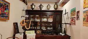 Есть среди экспонатов и заслуживающая внимания живопись. По легенде хозяин постоялого двора заказал художнику такую вот картину в уплату за проживание, так как денег у бедняги не было. Хозяин получил семейный портрет с женой, прекрасными конями и зданием, украшенным характерным и сейчас для Талдома деревянным декором.