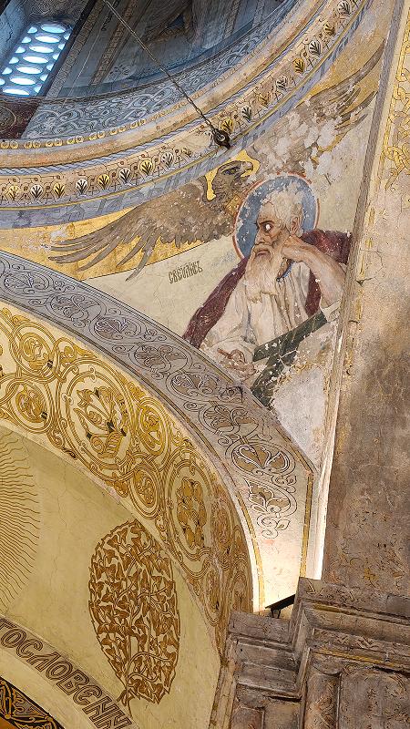 Особенно выразителен Иоанн Богослов, осененный крыльями могучего орла. Не верится, что мы видим церковную роспись, а не картину какого-то символиста.