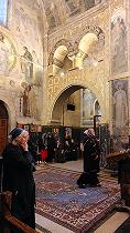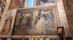 Чуть ниже - исполненная в 1902-1903 годах Литургия ангелов (Евхаристия), удивительно нежная по краскам роспись, полная светлой грусти.