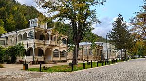 Абастумани - элегантное и камерное местечко в Грузии на южном склоне Месхетского хребта, где провел последние годы жизни великий князь Георгий Александрович, брат императора Николая II. История развития курорта связана с именем цесаревича, являвшегося в 1890-е годы наследником престола (сын Николая II Алексей родился только в 1904 году, уже после смерти Гергия Александровича, скончавшегося в 1899). Георгий рос здоровым и сильным юношей, но заболел чахоткой. Врачи запретили ему жить в Петербурге, и он поселился в Абастумани, где чистый горный воздух, сухой климат с мягкой зимой, обычно безветренная погода благоприятствовали лечению легочного туберкулеза. С 1864 года тут располагадся военный госпиталь, функционировавший только летом. Лечебное дело развивалось благодаря усилиям военного врача Адольфа Александровича Реммерта. К началу ХХ века здесь было три слабоминеральных термальных источника: Богатырский, Змеиный и Противозолотушный. Целебные свойства Абастумани привлекли внимание царской семьи, сюда отправили больного цесаревича в надежде на здоровый образ жизни. Георгий Александрович ездил верхом по окрестностям, совершал прогулки, посещал местные достопримечательности, старые монастыри и храмы. Радостным событием становился каждую весну приезд царской семьи, особенно матери, регулярно навещавшей любимого сына. Вместе с ней приезжала великосветская публика. Курорт становился все более привлекательным. Кроме деревянного дворца великого князя стали строиться другие дачи, многие сохранились до наших дней. Все постройки располагались вдоль единствеено дороги на берегу реки Оцхе (бывшей Абастуманки). Элегантные деревянные особняки и сейчас образуют гармоничный ансамбль, создавая приятное впечатление от прогулки вдоль реки.