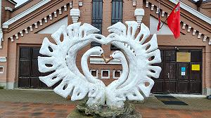 Современным функционалом объясняется и неожиданная скульптурная композиция перед пожарной каланчой — затейливо стилизованная пара лебедей. Не стоит подходить к этой композиции с чрезмерно строгими эстетическими мерками, она все же весьма оригинальна и свою функцию выполняет — оживляет пространство и безусловно привлекает внимание праздно шатающихся гостей и жителей города.