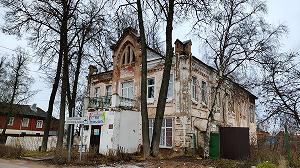 Самый красивый, на наш взгляд, дом ветшает на соседней Калязинской улице (под номером 33). Это особняк купца А.Х.Харитонова, построенный в 1906 году. Вселяет надежду надпись детского семейного клуба «Любознайка»: «Мы открылись».